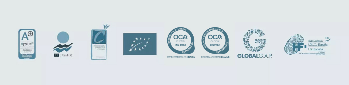 En el compromiso con la máxima calidad de nuestra producción, establecemos modernos y eficientes procesos para garantizar también los más altos parámetros de rentabilidad, calidad y optimización de recursos y tiempos.Una calidad que avalan las normas ISO 22000:2005 e ISO 14001:2005 y que nos convierten en la única entidad platanera reconocida con estas certificaciones.La confianza de nuestros clientes avalan nuestra calidad.